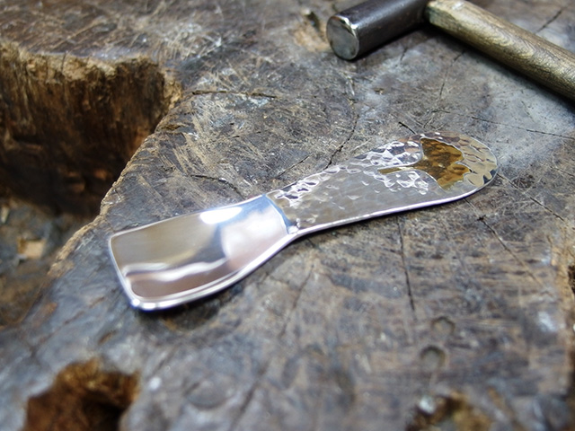 宗照の純銀手打ちアイススプーン(打込象嵌)
