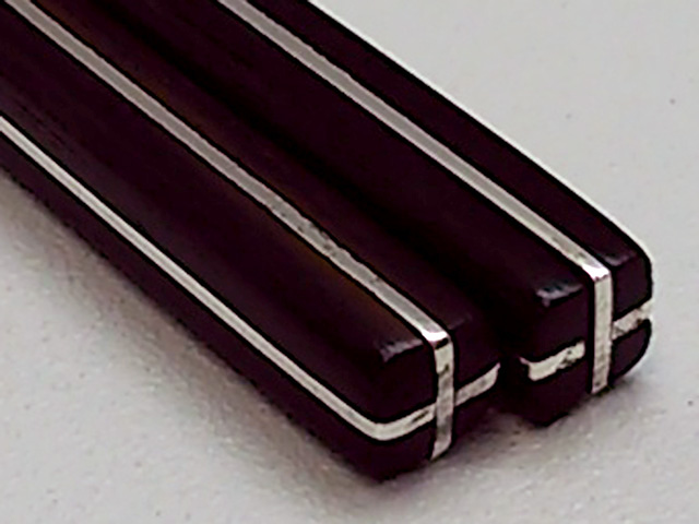 銀細工には、東京銀器の伝統技法である「鍛金技法」・「象嵌技法」・「彫金技法」を用い、本体部分にも、高級素材といわれる黒檀を使用しております。