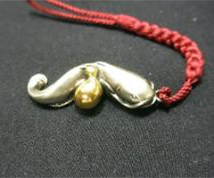 - 素材・付属品:本体銀製(瓢箪部分:純金メッキ仕上)、組紐付(組紐色:赤)、桐箱付