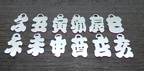 純銀製 透かし彫り江戸文字 干支根付